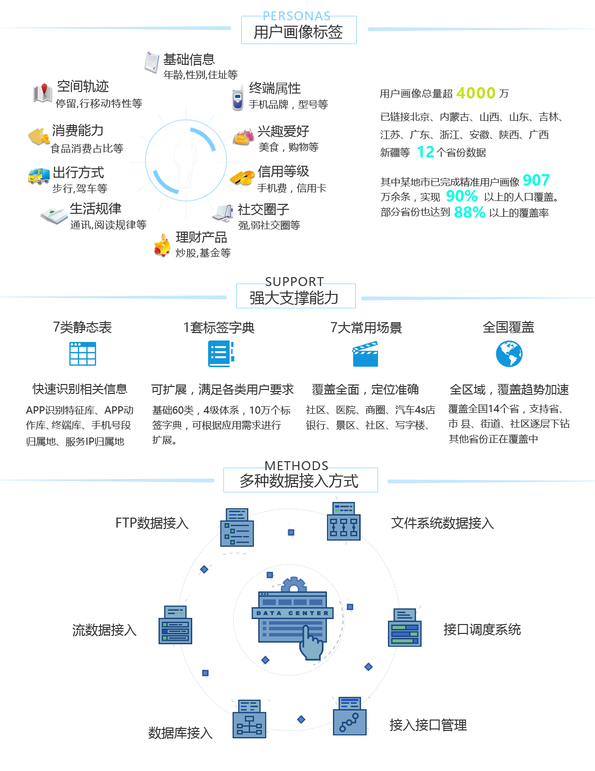 利用大數(shù)據(jù)封裝技術(shù),以開放接口和標(biāo)準(zhǔn)化服務(wù)的形式,對外提供數(shù)據(jù)運營服務(wù),通過對原始數(shù)據(jù)的二次加工和去隱私化,形成準(zhǔn)確的用戶畫像數(shù)據(jù),在法律允許范圍內(nèi)提供大數(shù)據(jù)價值變現(xiàn)等服務(wù)。