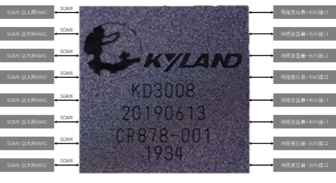 KD3008 GPHY芯片是高集成度自主可控芯片產(chǎn)品。芯片對外提供8個SGMII接口和2個QSGMII接口,支持10BASE-T、100BASE-TX、100BASE-FX和1000BASE-T業(yè)務。MAC接口支持SGMII應用模式、QSGMII應用模式。以太網(wǎng)接口支持自動協(xié)商、半雙工和全雙工、自動極性校準。支持雙層內(nèi)部環(huán)回測試,簡化系統(tǒng)級調(diào)測。