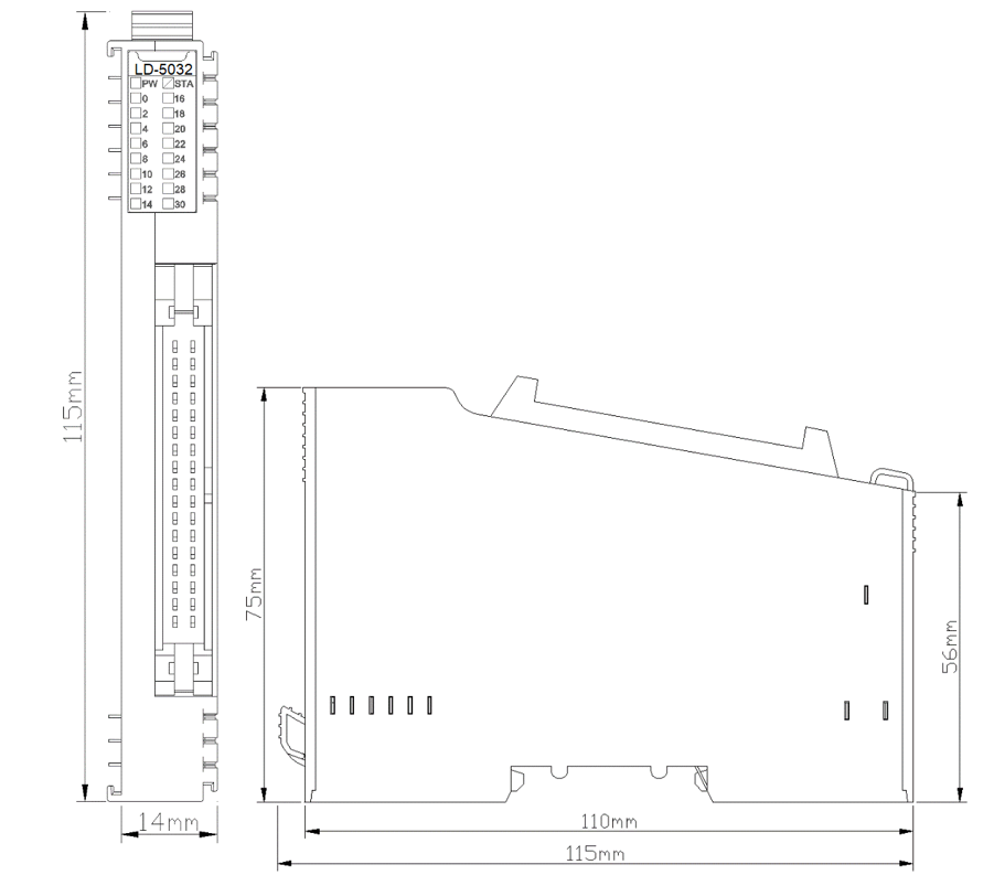 導(dǎo)軌安裝/32通道牛角連接器/彈簧接線方式 |
