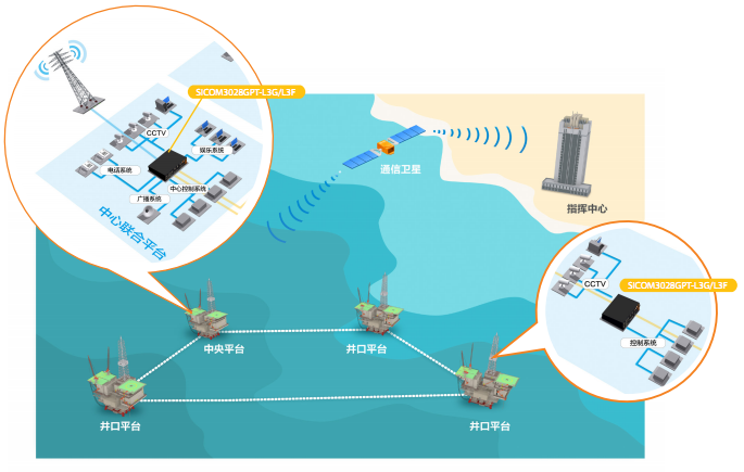 海上油氣開采固定設(shè)施長期工作在惡劣、復(fù)雜的海洋環(huán)境中, 受到波浪、 腐蝕、 沖刷、 疲勞及其它不利因素的影響,需要穩(wěn)定可靠的系統(tǒng)實(shí)時(shí)、不間斷的監(jiān)控其運(yùn)行狀態(tài),網(wǎng)絡(luò)系統(tǒng)作為監(jiān)控系統(tǒng)的基礎(chǔ)通信設(shè)施,需在相同的環(huán)境中提供穩(wěn)定的數(shù)據(jù)傳輸 服務(wù),網(wǎng)絡(luò)設(shè)備應(yīng)具備在寬溫、腐蝕、振動環(huán)境中長期穩(wěn)定工作的能力,為SCADA、視頻、語音等多業(yè)務(wù)系統(tǒng)提供高性能的通信支持。