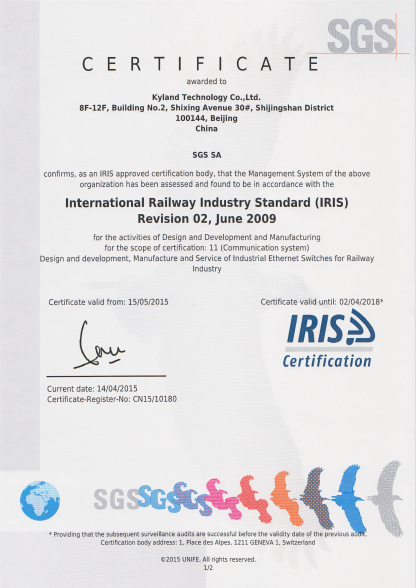 2015515日,北京東土科技順利通過SGSIRIS審核并獲得證書。IRIS(國際鐵路行業標準)是由歐洲鐵路行業協會(UNIFE)制定的,并得到了四大系統制造商(龐巴迪、西門子、阿爾斯通和AnsaldoBreda)的支持與推廣。