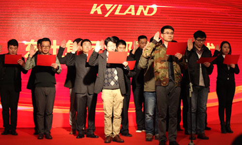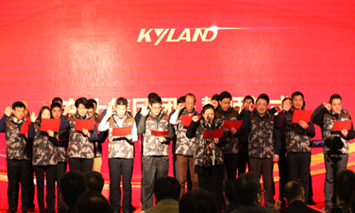 在東土人嘹亮的《團結就是力量》歌聲中,誓師大會拉開帷幕。本次大會分為3大階段,首先由各子公司負責人介紹2016年的收獲與2017年的發展規劃,緊接著是集團技術、產品、財務、人力資源、供應鏈、質量、支撐7大平臺負責人進行介紹匯報;并代領各自團隊鄭重宣誓。