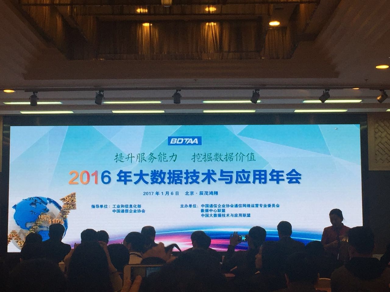 “2016年中國大數據技術與應用年會”于2017年1月6日在北京舉行,本屆年會由中國通信企業協會通信網絡運營專業委員會、數據中心聯盟、中國大數據技術與應用聯盟聯合主辦,工業和信息化部領導、中國通信企業協會及各省行業協會領導、中國信息通信研究院、規劃設計院所代表,行業專家、中國電信、中國移動、中國聯通、互聯網企業代表、大數據生產企業、提供技術、挖掘、分析、應用的企業、媒體代表等百余人參加了本屆年會。