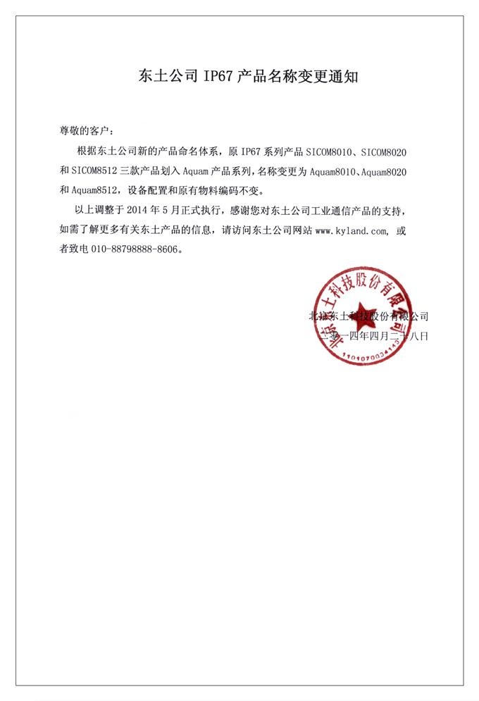 東土公司IP67產(chǎn)品名稱變更通知