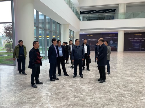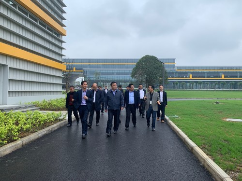 4月27日上午,湖北宜昌市副市長盧軍、點軍區區委書記宋濤、點軍區區長高杰一行,在董事長李平、副總經理張愛軍和黃松的陪同下,蒞臨東土科技(宜昌)有限公司參觀調研。