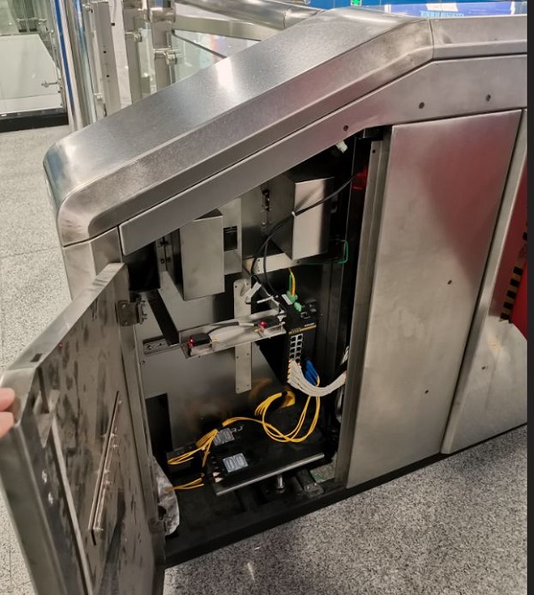 智慧城地鐵站共有A、B、C、D,4個出入口,各出入口分別設置一臺安檢機,每臺安檢機安裝1臺東土公司經過多年現場可靠運行實踐檢驗的第一代卡軌式工業交換機,通過網線與中心機房設置的安檢系統工業交換機互連,中心核心工業交換機再通過千兆電口接入到智慧地鐵大平臺。出入口處的安檢機集成了安全及售檢票功能,過安檢的同時,可進行刷臉、刷指靜脈過閘。