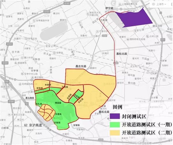 汽車城核心區的開放道路智能網聯汽車測試環境建設工程總范圍為25km2,本項目為一期工程建設,范圍包含上海國際汽車城核心區墨玉南路(博園路-安禮路)、安禮路(墨玉南路-北安德路)、北安德路(安禮路-安智路路)、安智路(北安德路-博園路)、博園路(墨玉南路-安智路)、安馳路(墨玉南路-于田南路)、安虹路(博園路-安研路)、安研路(博園路-安虹路)等,總面積約12 km2。