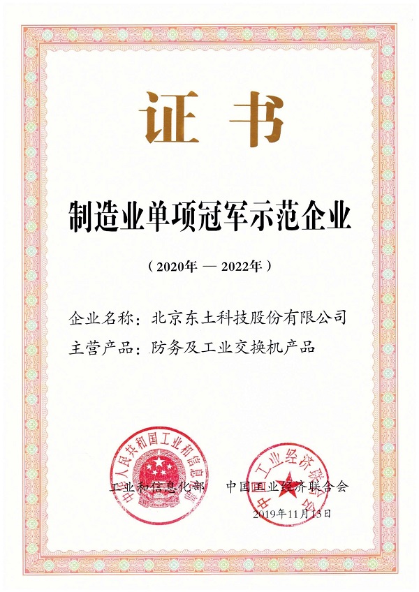 12月25日,工業(yè)和信息化部、中國(guó)工業(yè)經(jīng)濟(jì)聯(lián)合會(huì)在北京召開了“2019年制造業(yè)單項(xiàng)冠軍經(jīng)驗(yàn)交流會(huì)”。作為第四批制造業(yè)單項(xiàng)冠軍示范企業(yè)和單項(xiàng)冠軍產(chǎn)品生產(chǎn)企業(yè)代表,北京東土科技股份有限公司受邀參加了此次會(huì)議。
