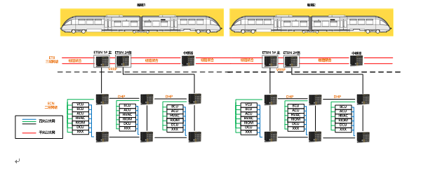 目前,大部分的列車通訊網絡依舊使用絞式列車總線(WTB)及多功能車輛總線(MVB),以實現列車級及車輛級的數據通訊。隨著以太網在工業通訊中大規模應用,IEC61375以其高帶寬的特性定義了新的通訊網絡:列車骨干網(ETB)及以太網編組網(ECN),用于替換現有的WTB及MVB網絡總線。ETB使用三層交換機(ETBN)實現骨干網的數據轉發,ECN使用二層交換機實現編組網內的數據轉發。