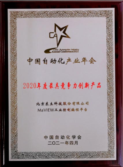 會中,CAIAC2021獎項在同期頒布,旨在銘記和展望中國自動化產業發展的歷程,總結和表彰為其發展做出重要貢獻的個人、團隊與企業,全面展示不斷革新的自動化產品,透徹分析成功的行業解決方案與應用案例,以“公正、公平、公開、專業”的原則全面展現過去一年里中國自動化產業的不斷進步與閃光點。活動歷時4個月,經過入圍推薦、專家評審、網上投票,最終,東土科技MaVIEW工業編程平臺成功獲選“年度最具競爭力創新產品”獎項。