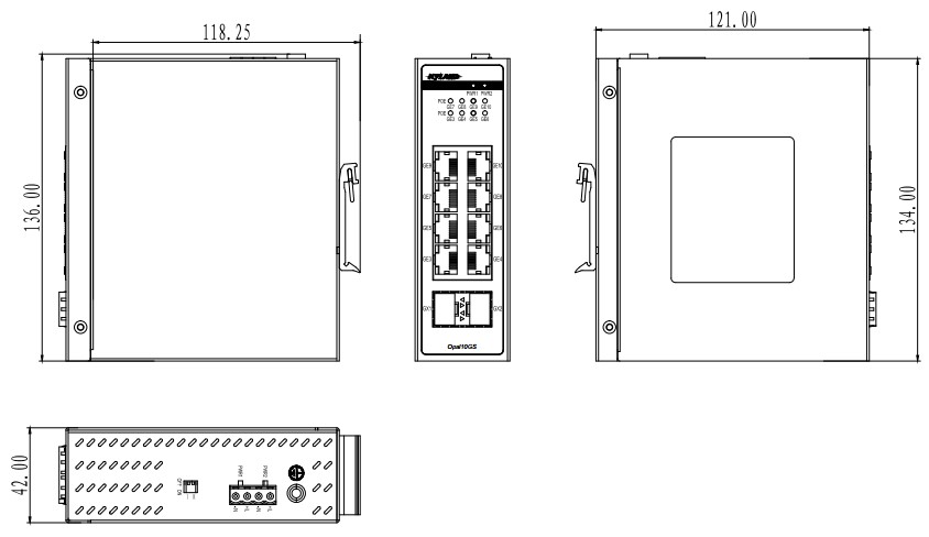 | Opal10GS-2GX8GP-L5-L5 | 2×1000Base-X SFP接口,8×10/100/1000Base-T(X) RJ45 PoE電口 | 12-36VDC, 冗余輸入 |