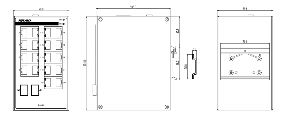 | 機械結(jié)構(gòu) | 外殼 金屬材質(zhì) 散熱方式 自然冷卻,無風(fēng)扇 防護等級 IP30 尺寸 79.6mm×134mm×106mm (W×H×D) 重量 0.7Kg 安裝方式 DIN卡軌式或壁掛式 |