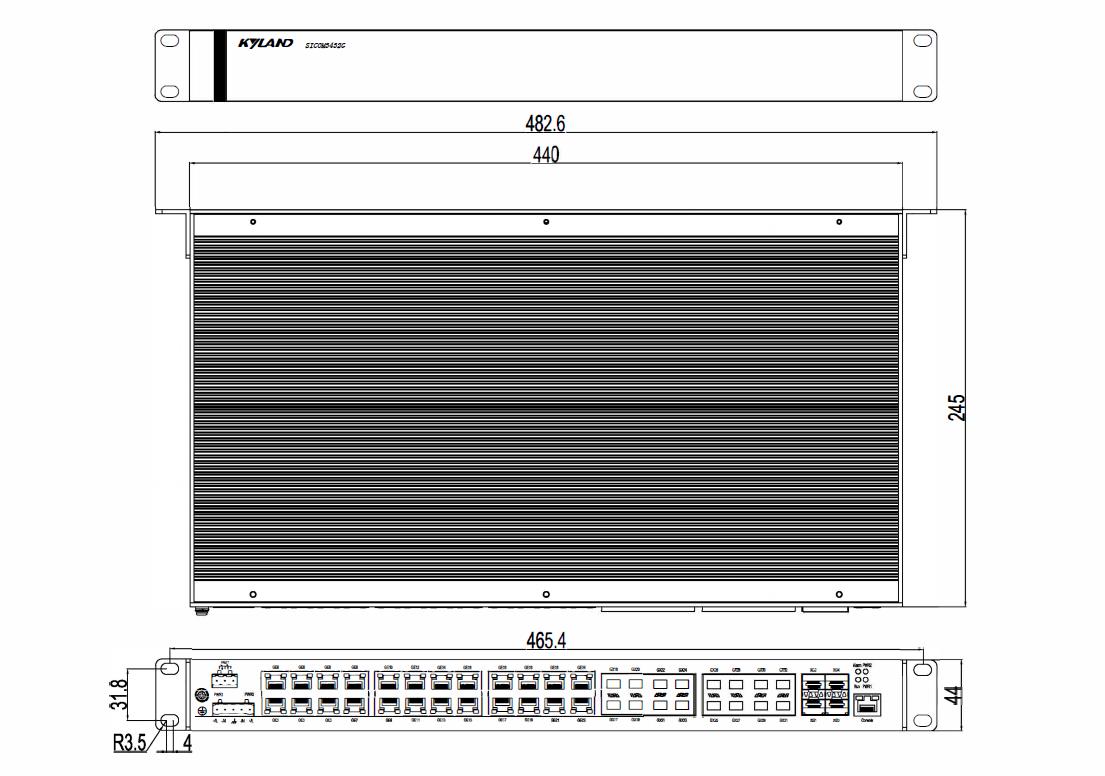 | 機械結構 | 外殼 金屬材質 散熱方式 自然冷卻,無風扇 防護等級 IP40 尺寸 440mm×44mm×245mm(W×H×D) 重量<4kg 安裝方式 19英寸1U機架式 |